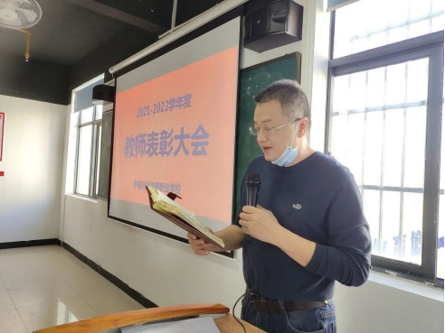 大會第三項,校長向漢平宣布2021至2022學年教學質量考核優秀教師名單:第一學期涂蕾、趙鳳海;第二學期吳思、涂蕾、張慧玲、蘇暢、王瓊芳。