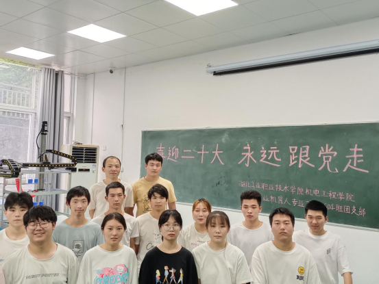 21級智慧云訂單班工業機器人技術專業的師生積極響應學校活動號召,團支部成員利用自身專業特色為慶祝中共二十大順利召開獻出自己的一份力量。因學生們平時的專業課程總會做一些實訓任務,利用機械手臂進行搬運、碼垛等等,大家就想到讓機器人來為中共二十大順利召開寫賀詞。在專業課老師陶華偉、紀宏志、唐學東三位老師的帶領下,在各位同學的不懈努力下,圓滿完成此次活動。