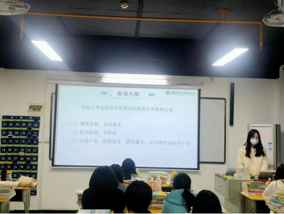 電子商務專業優秀教師李潔老師和姚奇老師默契配合,在講臺上激情宣講,同學們認真傾聽,對技能大賽充滿了無限期望;除此之外還有導游和動畫技能大賽,由潘虹彤、吳思、沈伊洋、鄭恒老師指導。