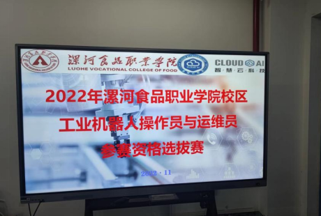 2022年11月15日-18日,漯河食品職業學院校區在智能制造實訓室隆重舉辦“2022年漯河食品職業學院校區工業機器人操作員與運維員參賽資格選拔賽”。