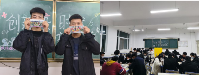 本次活動利用晚自習時間組織完成。活動開始由團支書孔情緣同學為大家講述比賽規則和比賽要求,然后同學們開始自己的作品設計,活動最后大家分別展示和介紹自己的作品,大家進行投票,分別選出了一等獎一名(王京京),二等獎兩名(趙宏宇、劉子琳),三等獎三名(孔情緣、馬啟凡、李瀟柔)。